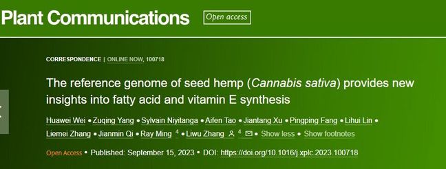2023年9月15日,我校麻类研究室张立武教授联合校基因组中心Ray Ming教授在国际植物科学著名期刊《植物通讯》(《Plant Communications》)在线发表了题为“The reference genome of seed hemp (Cannabis sativa) provides new insights into fatty acid and vitamin E synthesis”的论文。该研究绘制了籽用大麻的染色体水平参考基因组,并解析了籽用大麻种子中脂肪酸和维生素E合成途径的关键基因。