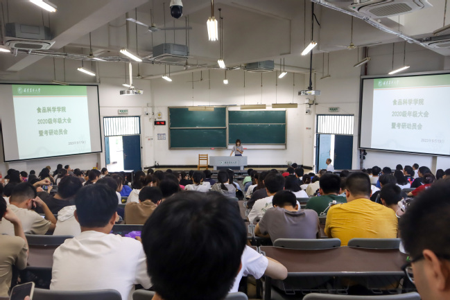 9月19日下午,食品科学学院在创新楼202教室召开2024届毕业生就业工作启动会暨考研升学动员会。会议由辅导员林河晨主持,院长庞杰,副院长林河通、曾绍校,党委副书记吴有平及2020级全体本科生出席会议。
