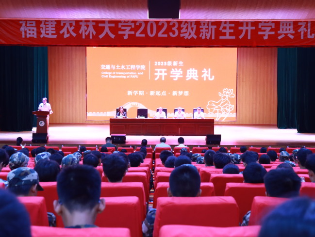 黄文龙首先向23级新生表示热烈的欢迎。他指出,明德、诚智、博学、创新,既是校训,也是农林大独有的气质、追求与育人之道,期盼新同学们在守护初心的道路上,开阔视野、健全人格,不断提升主动学习、独立思考的能力,塑造一个有良知、有担当、有追求的自我。他向23级新生提出了三点希望:一是要以立体视野观世界,博学明道。多学习、多思考、多追本溯源,把学习变成一种习惯和享受;二是要以慎独自修省自身,厚德博雅。学会不以物喜,不以己悲,时刻保持精神镇静;三是要以家国情怀济天下,博爱致远。要时刻心系家国,将个人价值才能最大限度地发挥出来。