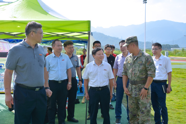 在后勤保障区,校领导慰问了后勤、医疗工作人员。校领导表示,近期天气较为炎热,要关心关爱每一位学生,加强物资供应与医疗保障,确保顺利完成军训任务。