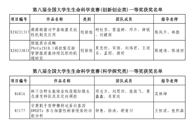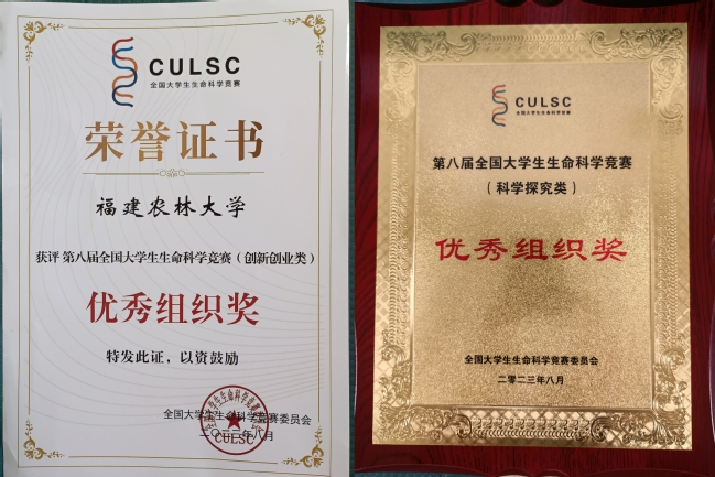 据悉,全国大学生生命科学竞赛是《全国普通高校大学生竞赛排行榜竞赛项目》目录内赛事,我校是省内唯一同时获得第八届大赛两个赛项优秀组织奖的高校,生命科学学院、园艺学院、林学院、农学院、动物科学学院(蜂学学院)、材料工程学院、海洋学院、食品科学学院、植物保护学院等多个相关学院均积极组织动员学生参赛。