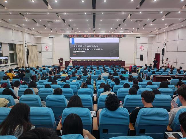 9月22日,我校在禧强楼学术报告厅举办“深耕农林·闪耀未来”系列职业成长工作坊第五期讲座。本期讲座邀请新通教育集团就业指导中心专家、高校合作中心总监何小璐老师进行分享。讲座由学工部、学生创新创业中心(合署)主办,350余名本科高年级学生到场听讲。