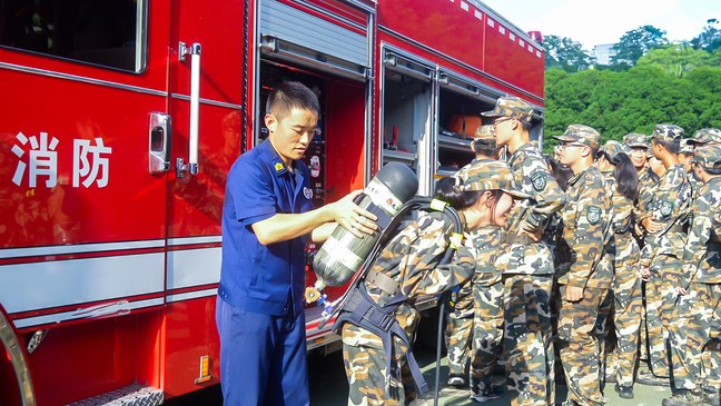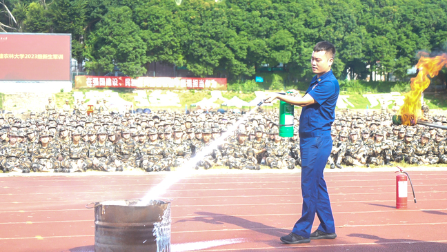 在军训期间举行消防安全培训,进一步提高了参训学生的消防安全素质、自防自救能力和处置突发火情能力,为筑牢校园消防安全防线和建设平安和谐校园打下坚实基础。