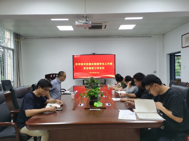 9月27日下午,农学院在学楼311会议室召开中秋国庆假期学生工作暨安全稳定工作会议。会议由学院党委副书记吴荣辉主持,全体辅导员参加会议。