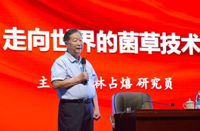 课堂上,林占熺动情讲述了习近平总书记关心关怀菌草事业发展的故事,结合“点草成金”“海晏河清”“天涯比邻”等不同视频,系统展示了菌草“以草代木”栽培蘑菇、防风固沙保护生态环境、成为造福广大发展中国家人民的“幸福草”等重要成果,传递着林占熺团队“发展菌草业、造福全人类”的崇高理想。互动问答环节中,林占熺老师的耐心回答让师生们更加深刻感受到他知之、信之、行之,从风华正茂到耄耋之年,始终秉持共产党人的初心,就像菌草一样,咬定青山大地,立根黄沙破岩,深深地扎根在大江南北、荒漠戈壁,真正把论文写在祖国的大地上,把科研做在生产实践中,把成果放到贫困百姓的钱袋子里,用自己的实际行动诠释着一名中国共产党员的理想信念。他勉励大学生不断加强专业知识学习,坚持理论联系实际,投身乡村振兴的广阔天地,在强国建设、民族复兴的新征程上奋勇拼搏,为祖国添彩、让人生出彩。