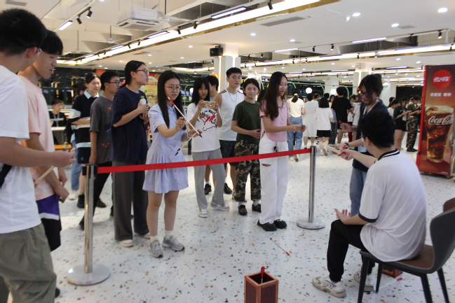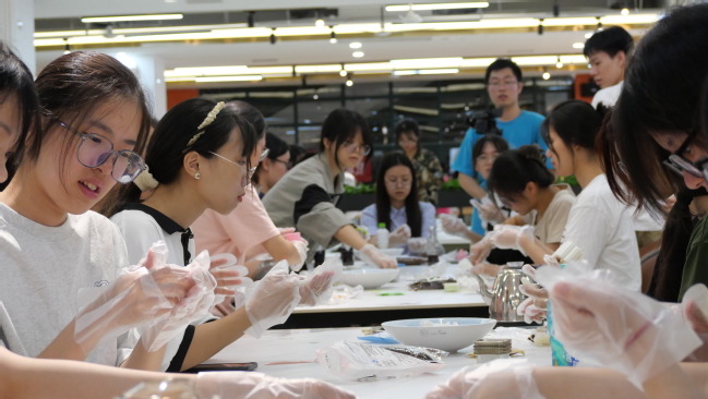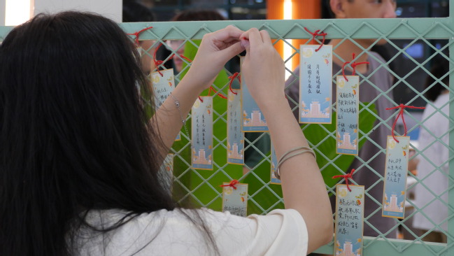 本次中秋特辑活动包括游园盖章和月饼制作两大区域,通过集章打卡的方式引导同学们参与体验,感受中华优秀传统节日之美。在活动现场,同学们与“明月有约”,在书签上写下美好寄语,托红绳以思念和期许;在投壶、弹弓、沙包、套圈的小游戏中,同学们沉着冷静,瞄准目标,在毫厘间感受命中的快乐;此外,到场同学亲自体验月饼制作过程,擀皮、填馅、捏合、成型、脱模,在同学们的动手操作下,一个个令人垂涎欲滴的月饼制作成功,将这次中秋特辑活动的氛围推向高潮。