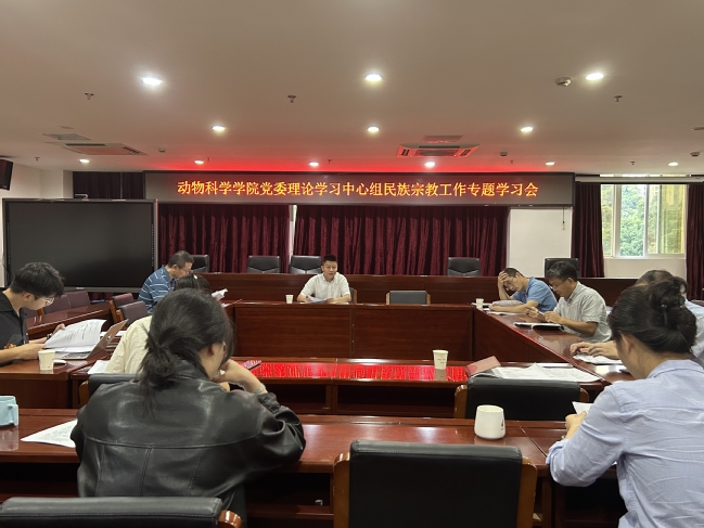 10月8日下午,动物科学学院党委在学院会议室召开党委理论学习中心组民族宗教工作专题学习会,学院党政领导班子、党政办负责人、党委组织员、政工干部等参加会议,会议由学院党委副书记(主持工作)修新田主持。