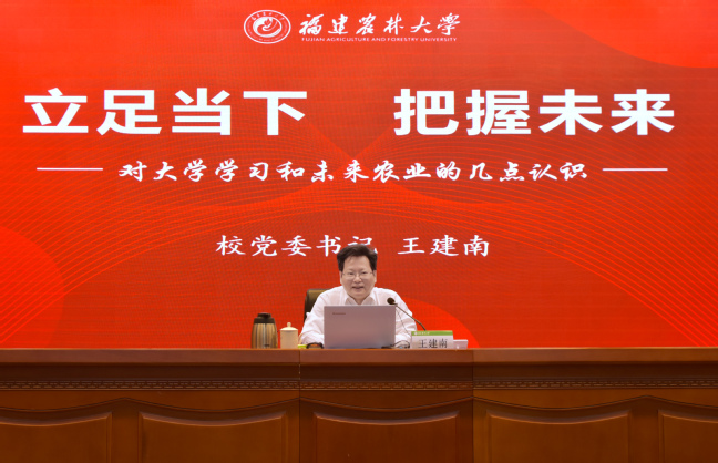 王建南指出,未来农业,大有可为。我国是农业生产大国,又是农产品需求大国,大国小农决定了重农固本是安民之基、治国之要。我们要深刻认识农业的极端重要性和当前面临的诸多挑战,清醒把握未来农业的发展走向和光明前景,围绕效能提升战略、系统优化战略、资源高效循环战略,着力创新生物技术、数字智能等六个方面技术体系。他强调,面向未来,学校将始终牢记习近平总书记的殷殷嘱托,坚持改革创新,以立德树人为根本,以强农兴农为己任,着力推进基础学科、新兴学科、交叉学科发展,拿出更多科技成果,培养更多知农爱农新型人才。