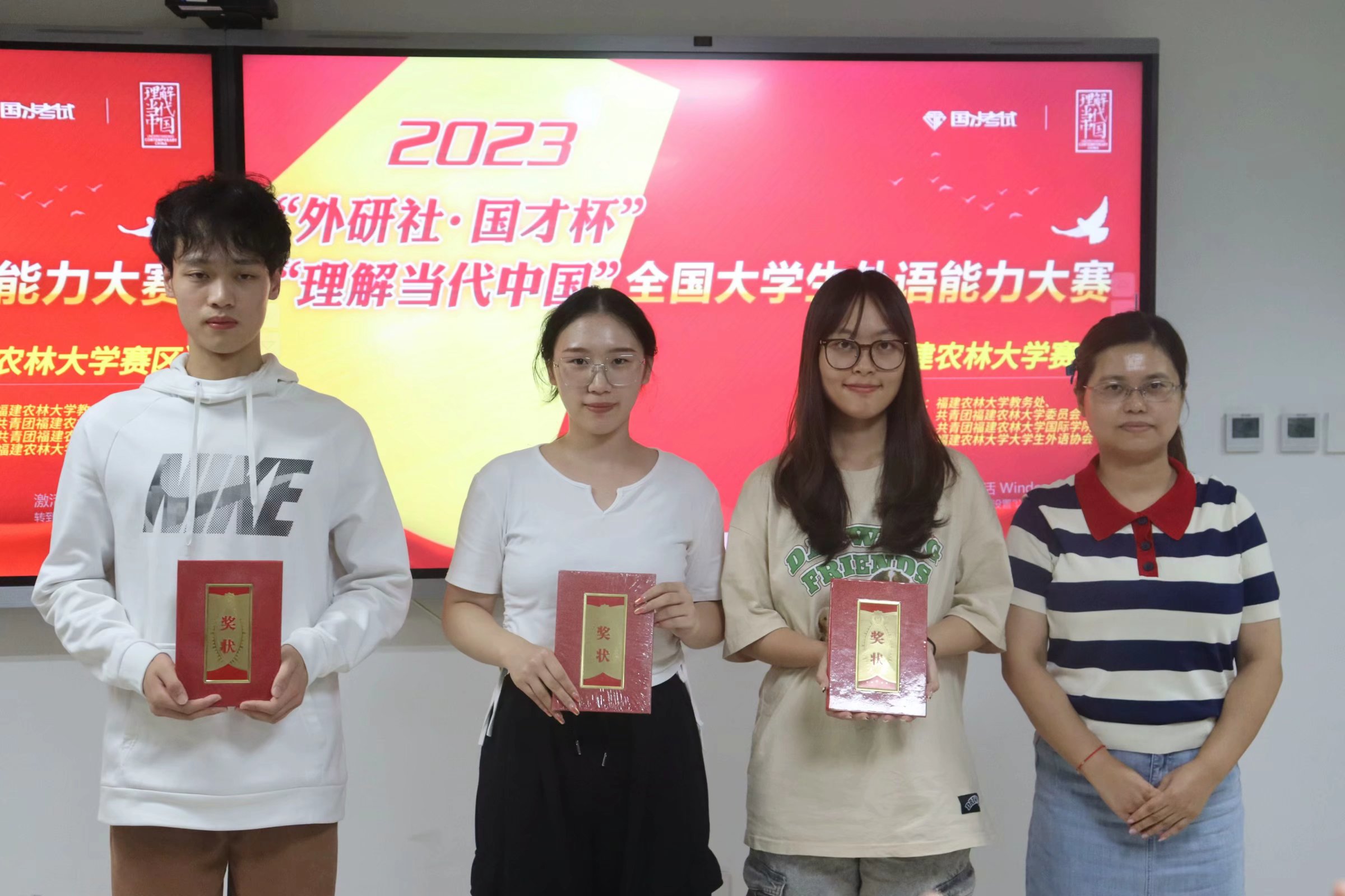 本次赛事于旗山校区综合楼903举行,共设英汉视译、交替传译两个环节。赛场上,选手们严谨专注、厚积薄发;才思敏捷、“译”采飞扬,用青春的声音道出青年学子对习近平新时代中国特色社会主义思想关键术语和中华思想文化术语的阐释。经激烈角逐,最终来自戴尔豪西大学联合学院(国际学院)的董雨菲、林煜聪和谢心怡3位同学获得口译大赛一等奖,来自戴尔豪西大学联合学院(国际学院)的张玉梅、植物保护学院的郭一祎和乡村振兴学院的孙枝帆3位同学获得口译大赛二等奖,来自戴尔豪西大学联合学院(国际学院)的江抒言、孔德珺、未来技术学院的吕祎凡和林学院的周慧敏4位同学获得口译大赛三等奖。