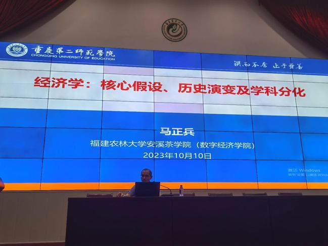 10月10日,安溪茶学院(数字经济学院)邀请教育部经济类教指委委员、重庆第二师范学院经济与工商管理学院院长、开云网页版闽江学者讲座教授马正兵为师生做《经济学:核心假设、历史演变及学科分化》讲座。