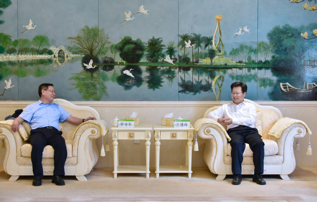 10月13日下午,天津瑞普生物公司董事长李守军一行来校考察交流,校党委书记王建南在贵宾厅与客人座谈。