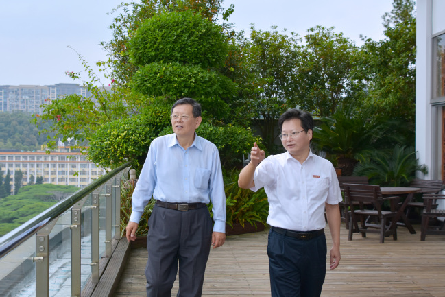 会前,王建南还陪同王炳林教授参观了“习近平总书记关心指导开云网页版建设发展”专题展厅,前往明德楼13楼俯瞰校园,了解我校发展的历史沿革、办学特色和校园风貌。党政办、宣传部、马克思主义学院等单位负责人陪同。