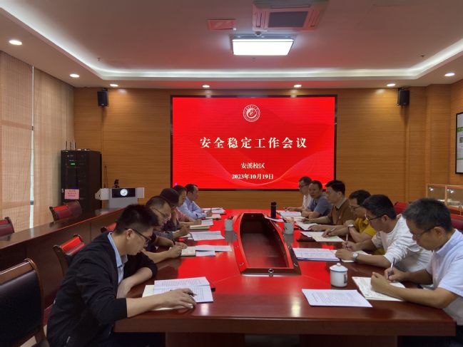 10月19日上午,安溪校区召开校园安全稳定工作会议,安溪校区管委会主任黄成茂主持会议,校区管委会领导班子成员、各部门负责人参加会议。