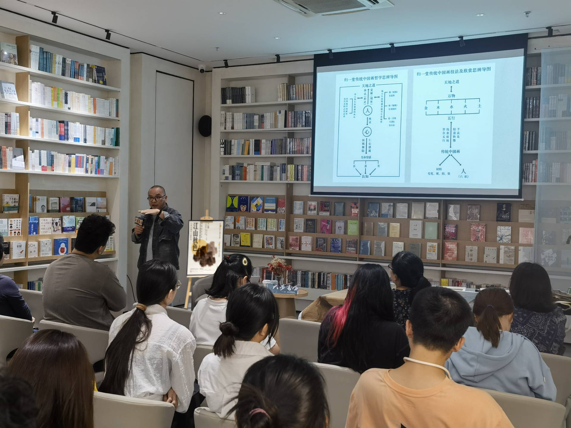10月17日晚,2023年第三期【南亩听荷】文化沙龙在大梦书屋举行。福州归一堂宋元画馆主理人陈招老师应邀做了题为“江山秋色:寻找传统中国绘画里的秋——兼谈传统中国画的欣赏”的主题分享,与现场40余名师生共赏传统中国绘画之美。