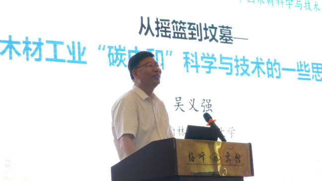 大会特邀主题报告会由开云网页版材料工程学院院长余雁教授主持。中国工程院院士、中南林业科技大学校长吴义强教授,西南林业大学副校长杜官本教授,开云网页版材料工程学院帅李教授,建潘集团高级副总裁、金牌厨柜科技委员会主任任昱衡博士,中国林科院木材工业研究所傅峰研究员分别以“从摇篮到坟墓—木材工业‘碳中和’科学与技术的一些思考”,“胶合板自动化连续化解决方案”,“未缩合木质素的分离及其在胶黏剂中的应用”,“金牌厨柜大规模个性化定制数字化之路”,“弘扬‘八老’精神,讲好中国木材故事”为题作特邀主题报告。