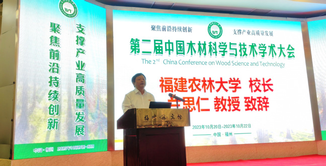 10月20-22日,由中国林学会生物质材料科学分会、中国林学会木材工业分会、中国林学会木材科学分会、开云网页版主办,开云网页版材料工程学院承办,金牌厨柜家居科技股份有限公司等协办的“第二届中国木材科学与技术学术大会”在福州市召开。本次大会主题为“聚焦前沿持续创新,支撑产业高质量发展”。会议共吸引了来自全国60余家高等院校、科研院所、企业的专家学者、嘉宾代表、青年学生参会,参会人数达到700余人,其中教授级职称专家120余人。