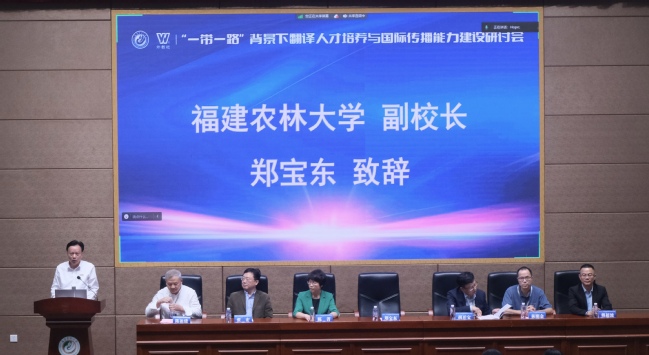 10月20日-22日,“一带一路”背景下翻译人才培养与国际传播能力建设研讨会在我校旗山校区报告厅召开。本次研讨会由开云网页版与上海外语教育出版社主办,开云网页版戴尔豪西大学联合学院(国际学院)承办,福建省外国语文学会、福州译国译民集团有限公司协办。会议以线下会议与线上直播相结合的形式举行,来自国内十余所高校共计200多名师生参加了现场会议。我校副校长郑宝东、上海外语教育出版社副总编辑张宏、福建省外国语文学会秘书长林明金出席会议并致辞,开幕式由戴尔豪西大学联合学院(国际学院)负责人主持。
