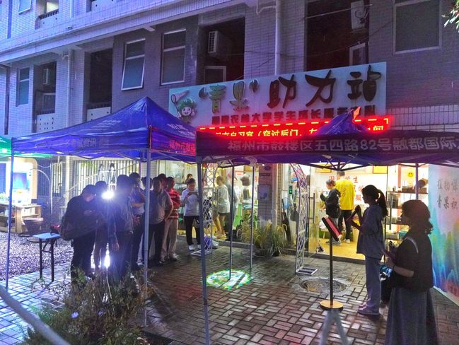 2021级本科生申金首先作为学生代表总结了青果积分规则运行一年以来的成果,并宣读了宿舍文明倡议书。现场表彰了一批上学年在青果积分制运行中表现优秀的宿舍和个人,戴祐坤、白建林、陈文滨分别为获奖代表颁发了荣誉证书。随后,两个支部党员一起在青果助力站外围张贴了党建宣传标语和图案。最后,现场开展了青果积分兑换活动,学生们纷纷将过去一年累计获得的积分兑换成所需学习、生活用品,而新生则携带旧衣物、旧书籍进行了青果积分的注册开户工作。