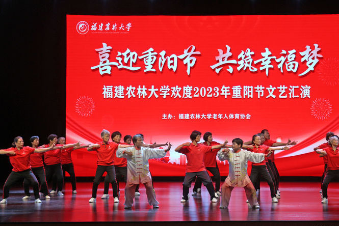 为弘扬中华民族尊老、爱老、敬老的优良传统,丰富学校离退休教职工的精神文化生活,10月20日,在重阳节来临之际,校老体协在校礼堂举办2023年重阳节文艺汇演,校党委副书记陈世奎、校关工委常务副主任叶国通、校离退休党委副书记李泽辉、校老体协副主席兼秘书长王寿昆、校离退休工作办公室全体人员、各涉老组织骨干和代表等出席和观看了汇演。