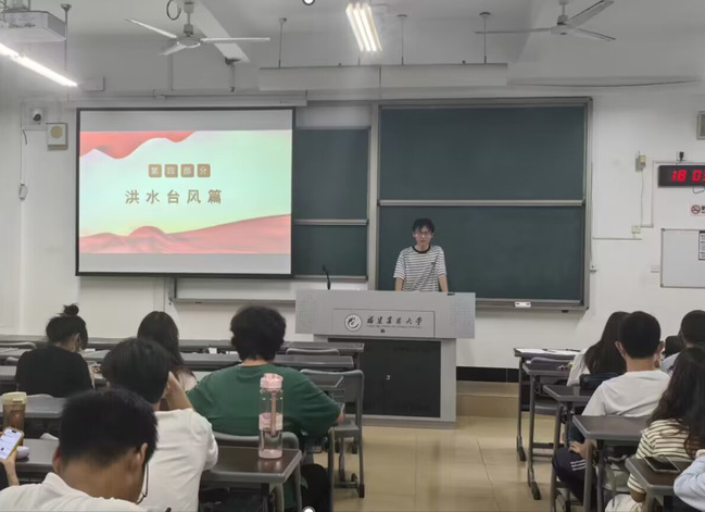 防灾减灾知识宣讲。学院以知识科普、案例分享、感悟交流等形式,组织开展防灾减灾知识宣讲活动。向同学们详细介绍了国际减灾日的由来,并分为台风避险、洪水减灾、地震逃生等章节,向同学们普及了防灾减灾知识和避灾自救技能。
