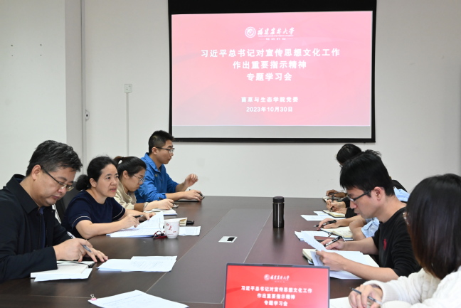 10月30日下午,菌草与生态学院党委在金综楼A401会议室组织召开理论学习中心组专题学习研讨会,学院党委理论学习中心组成员参加学习,各党支部书记列席,主持学院党委工作的陈月霄主持学习会。