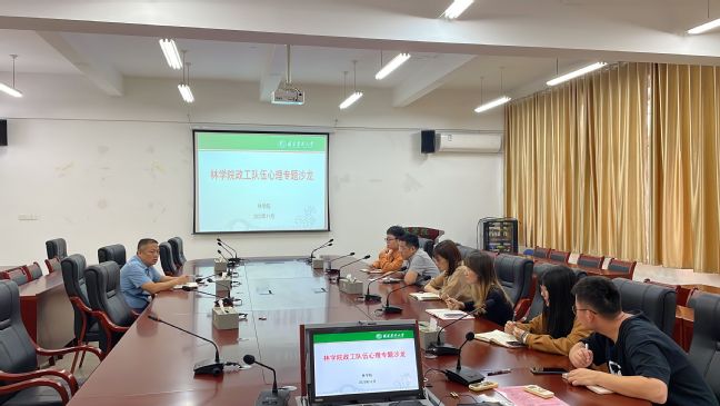 11月3日下午,林学院在诚智A楼206会议室开展心理工作专题沙龙活动,会议由学院党委副书记张成主持,全体辅导员参加。