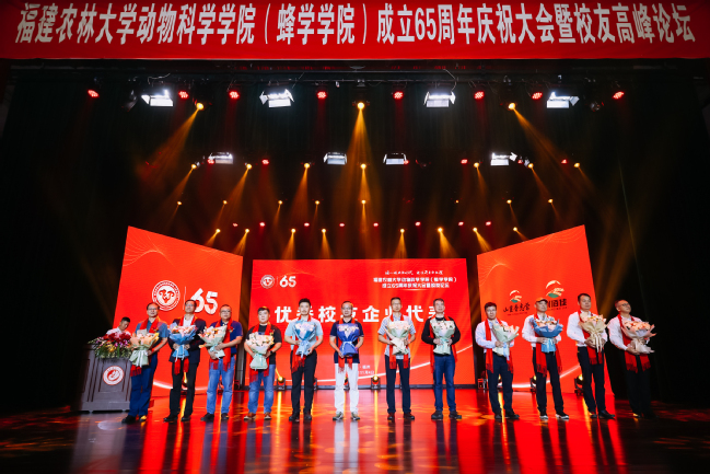 大会举办了退休教师荣休仪式,为近5年退休的10位教师代表颁发“学院发展贡献奖”;邀请12位优秀校友企业代表接受学生代表献花;进行了校友会动物科学学院(蜂学学院)分会换届工作,林庆藩为新一届校友分会会长林长光、秘书长蓝惠福颁发聘书。学院还向与会人员汇报了六十五年来学院的发展成就,重点汇报了近年来学院在科学研究、人才培养、社会服务、文化传承等方面的学科发展成绩,并号召全体动蜂人努力绘就学院高质量发展新蓝图,在建设“双一流”高水平大学的新征程上再出发。