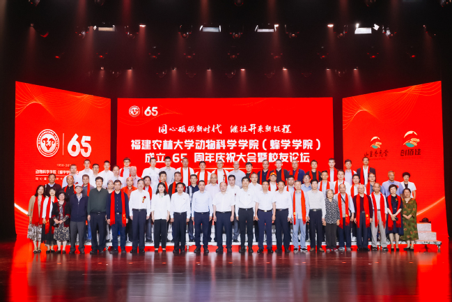 会见后,副校长郑宝东、林庆藩出席了动物科学学院(蜂学学院)成立65周年庆祝大会暨校友高峰论坛。郑宝东受校党委书记王建南、校长兰思仁委托在大会上致辞。何国辉代表校友致辞,号召大家登高望远,脚踏实地,勇担时代使命, 助力以中国式现代化全面推进中华民族伟大复兴。郭宋玉在致辞中指出,希望未来能同我校师生、全体校友一起为加快推进我省农业农村现代化建设贡献力量。黄勤楼代表兄弟单位致辞,表示省农业科学院愿与动物科学学院(蜂学学院)携手前行,共同为我省畜牧兽医事业高质量发展积极贡献科技力量。福建光华百斯特生态农牧发展公司董事长兼总裁林长光、厦门百拓生物工程有限公司董事长谢荔朋、福建山里香惠营农业有限公司董事长兰惠福先后上台发言,分享了自己的学习、成长、创业历程,感恩母校的悉心培养和老师们的辛勤付出,表示将尽己所能为学院学校高质量发展助力。蜂学系教师周冰峰,国家优秀青年基金获得者郭桂杰分别代表离退休教师、在职教师发言。2021级畜牧学硕士研究生、2023年度研究生国家奖学金获得者林芷昕代表在校学生讲话。他们都表达了对学院成立65周年的祝福和期待。