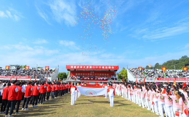 金秋送爽,天朗气清,11月8日上午,校第二十三届运动会开幕式在北区田径运动场举行。校党委书记王建南出席开幕式并宣布本届校运会开幕。校长兰思仁致开幕词,校党委副书记陈世奎、曾华平,副校长郑宝东、林庆藩、唐振鹏、周顺桂出席开幕式。开幕式由唐振鹏主持。