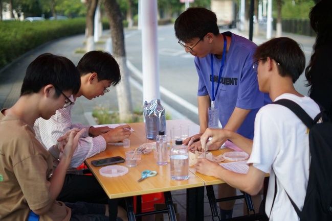 本次杯垫DIY活动现场分为答题处和制作点两个区域。参与人员在完成签到后随机抽取有关国家资助政策的知识进行作答,随后领取杯垫膜具进行DIY制作。活动现场井然有序。参与活动的同学积极回答与国家助学贷款等方面相关问题,在答疑过程中对资助知识有了更为清晰的了解,在杯垫的制作过程中感受亲手创作的乐趣。