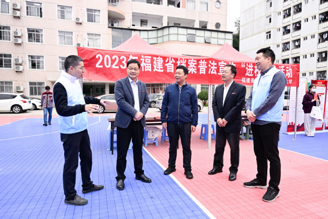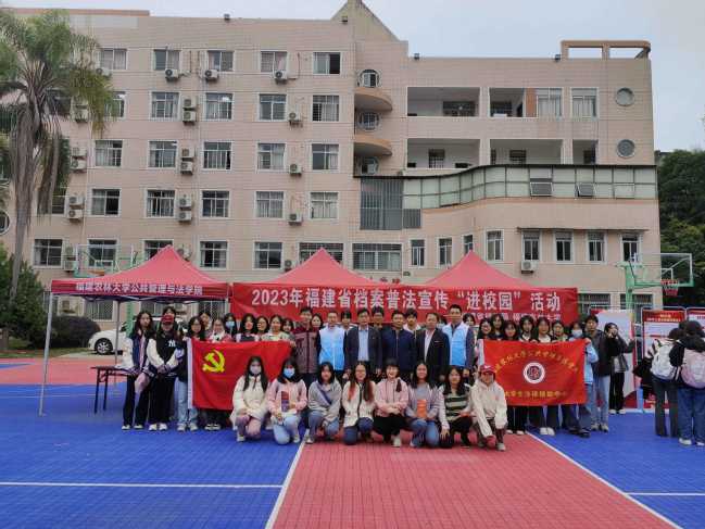11月14日上午,为增强全校师生档案法治意识,进一步宣传档案法,形成学法、知法、守法、用法的良好氛围,我校联合福建省档案局共同举办2023年档案普法宣传“进校园”活动,本次活动由公共管理与法学院、校综合档案室共同协办。省档案局档案执法监督处处长叶建强一行3人,公共管理与法学院党委书记曾起郁、党委副书记郑龙章及广大师生参加活动。
