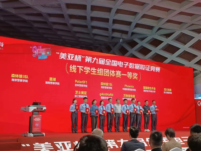 2023年11月10日-12日,“美亚杯”第九届全国电子数据取证竞赛线上、线下同步举行,竞赛在厦门设线下赛场。经过激烈角逐,计算机与信息学院网络空间安全专业2021级的林昊杨、练飞扬、谢承泽同学获得学生组团体赛一等奖,郭麟杰、岳览、柯志嘉同学获得学生组团体赛三等奖,练飞扬同学获得学生组个人赛三等奖,纪祥敏老师获得优秀指导教师奖,学校获得优秀组织奖。