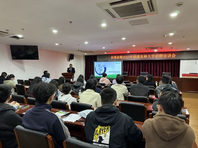 11月15日晚,动物科学学院(蜂学学院)在动科楼七楼大会议室举办2023年第四期校友论坛暨福建丰泽农牧有限公司招聘宣讲会。校友企业福建丰泽农牧有限公司总经理洪五一等参与论坛并开展招聘宣讲,学院党委副书记(主持工作)修新田、院长陈吉龙、学院在校生、毕业生代表参加宣讲会。