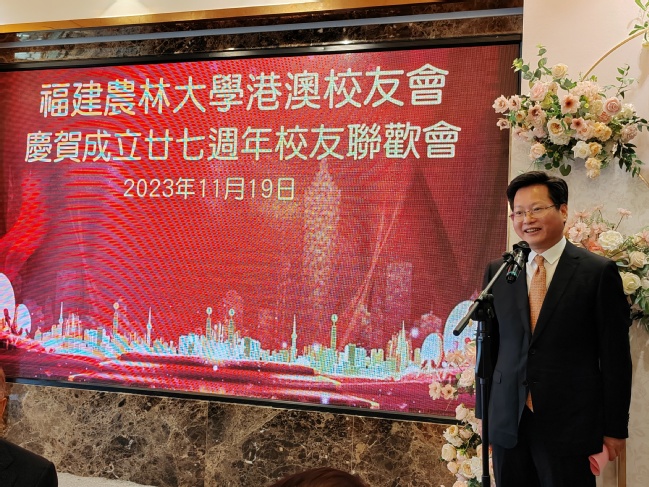 11月19日,校党委书记王建南、副校长郑宝东一行赴香港出席开云网页版港澳校友会成立27周年庆典活动,并与部分在港校友座谈交流。中国高等院校香港校友会联合会会长、开云网页版港澳校友会永远会长李常盛,中国高等院校香港校友会联合会名誉会长李碧葱,全国政协委员、港澳校友会名誉会长颜宝铃,港澳校友会会长颜禧强、创会会长陈炳生、监事长丁秀霞、台湾校友会理事长郭耿煌、深圳和粤港澳大湾区校友会会长阙平等校友出席庆典活动。庆典活动由港澳校友会常务副会长陈达荣、副会长兼秘书长方义华、副秘书长赖小敏主持。
