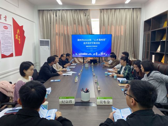 11月21日下午,学工部与中共漳州市委人才工作领导小组于综南附307召开2023年“人才漳州月”招才引智座谈会。漳州团市委副书记陈婉儿等一行、校团委书记周娟娟、校学工部负责同志等参加座谈。