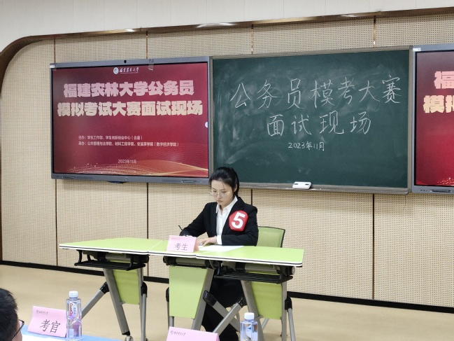 此次模拟考试由笔试和面试两部分组成,在金山校区、旗山校区和安溪校区同一时间统一开考,共有420余人参加。经过阅卷、统分、复核等环节,共有10名同学进入面试复赛环节。采用公务员结构化面试形式,公共管理与法学院研究生张铮铮获得一等奖、经济与管理学院本科生施彬彬获得二等奖、经济与管理学院研究生毛怡凡获得三等奖、资源与环境学院本科生苏茹婷等7位同学获得优秀奖。