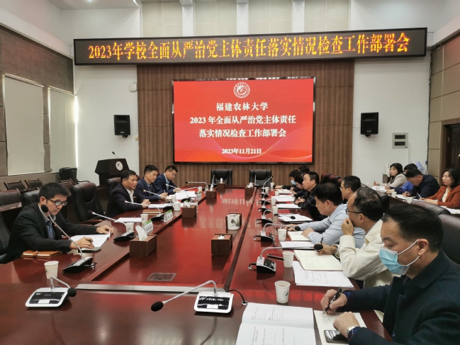 11月21日下午,我校在明德楼武夷厅召开2023年全面从严治党主体责任落实情况检查工作部署会。校党委副书记陈世奎出席会议并讲话。