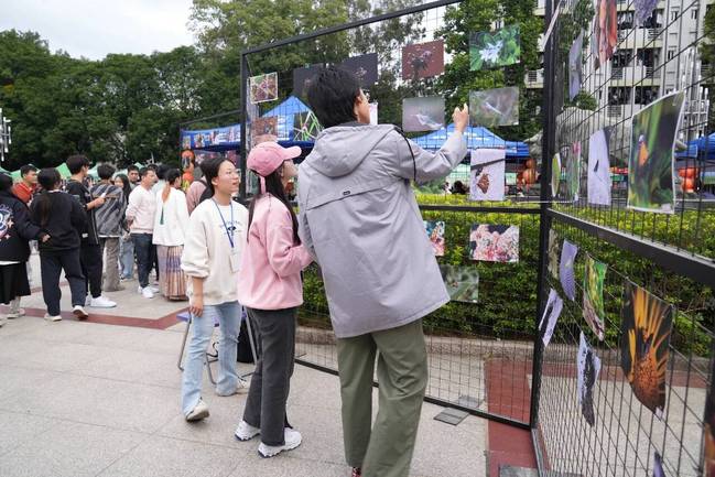 此次社团风采展分为的“德”“智”“体”“美”“劳”“耕读特色”和“昆虫文化”等六个主题展区。其中,耕读特色展区的活动格外引人注目,标本制作、菌草培育、植物拓染、蜂疗推拿等体验活动,将学科知识融入多彩文化中,为同学们带来沉浸式的耕读体验,令人流连忘返。昆虫文化展区设有昆虫摄影大赛、“巧夺天工”植物昆虫创意作品大赛,昆虫邮票展以及昆虫辨识、昆虫速记、昆虫知识竞答等精彩游戏,吸引现场众多师生的驻足关注和参与,现场气氛热烈。其他社团也使出浑身解数,诗词接龙、书法绘画、水果雕刻、棋局对弈……通过不同方式展示出“一站式”学生社区宜学宜居的文化氛围,活动现场到处都是热情洋溢的笑脸,游览参观人数达二千人次。