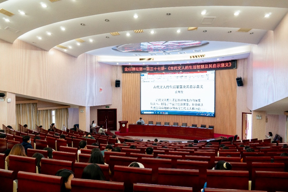 11月27日下午,福建师范大学文学院教授、博士生导师、博士后合作导师欧明俊应邀做客我校金山讲坛第137讲,在博学报告厅为我校师生做了一场题为《古代文人的生活智慧及其启示意义》的讲座,吸引了近200多名师生前往现场聆听。