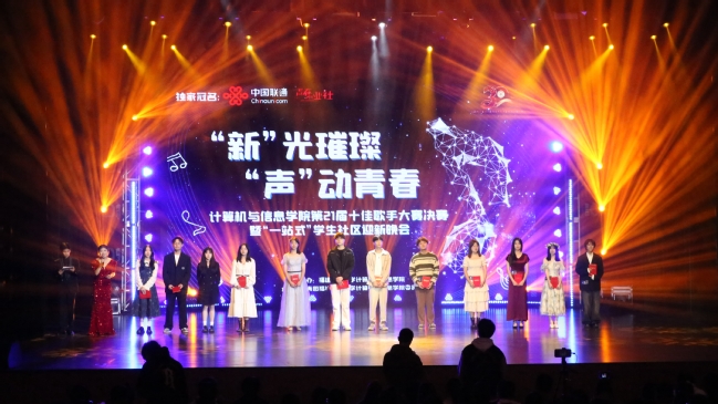 计算机与信息学院第21届十佳歌手大赛决赛共分为三轮,分别是“默契联唱”“十佳争锋”“歌王之战”三个环节。入围决赛的12位选手们展示了自己独特的演唱风格和台风,使整个舞台充满了音乐的魅力,不同风格的音乐呈现了极具个性的表演,选手发挥出最佳状态,尽情展示了他们多样的音乐技巧和艺术表达能力。舞台灯光璀璨、激情四溢,为观众们带来了一场视听盛宴,现场氛围热烈高涨。