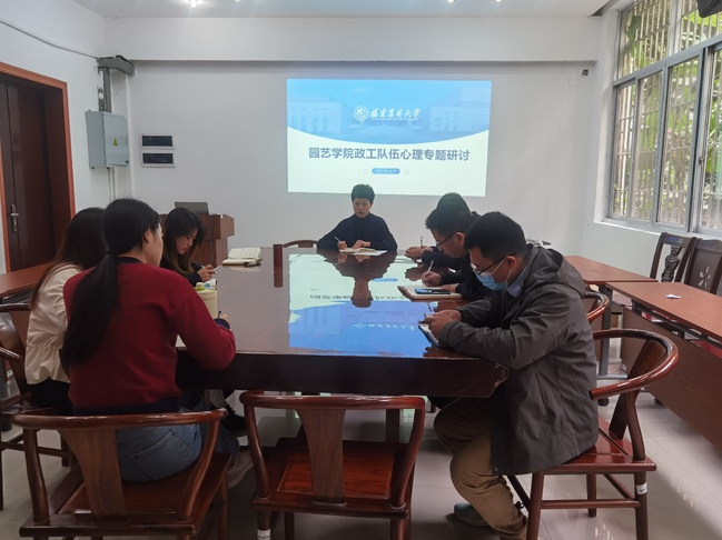11月29日上午,园艺学院在园艺楼一层会议室召开政工队伍心理专题研讨会,院党委副书记康恩慧主持会议,全体辅导员参加。