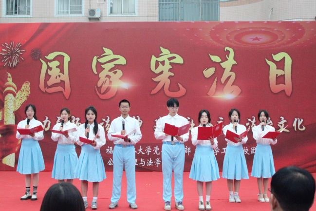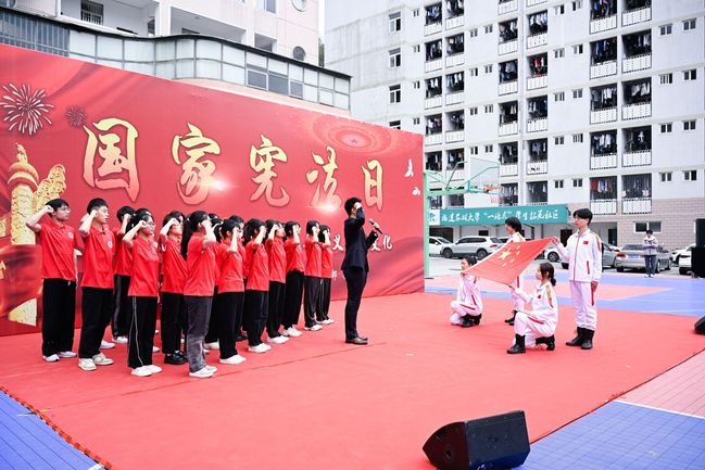 12月3日上午,在南区举办了“国家宪法日”主题宣传活动。活动现场开设主题作品展,开展“知宪于心,守宪于行”主题游园活动,并提供免费法律咨询服务。同学们表演了舞蹈《国家》、小组唱《宪法伴我们成长》、朗诵《宪法,与你我同行》、合唱《有我》等节目,以灵活多样的普法形式引导广大师生自觉学习贯彻习近平法治思想,自觉尊崇宪法、学习宪法、遵守宪法、维护宪法、运用宪法。