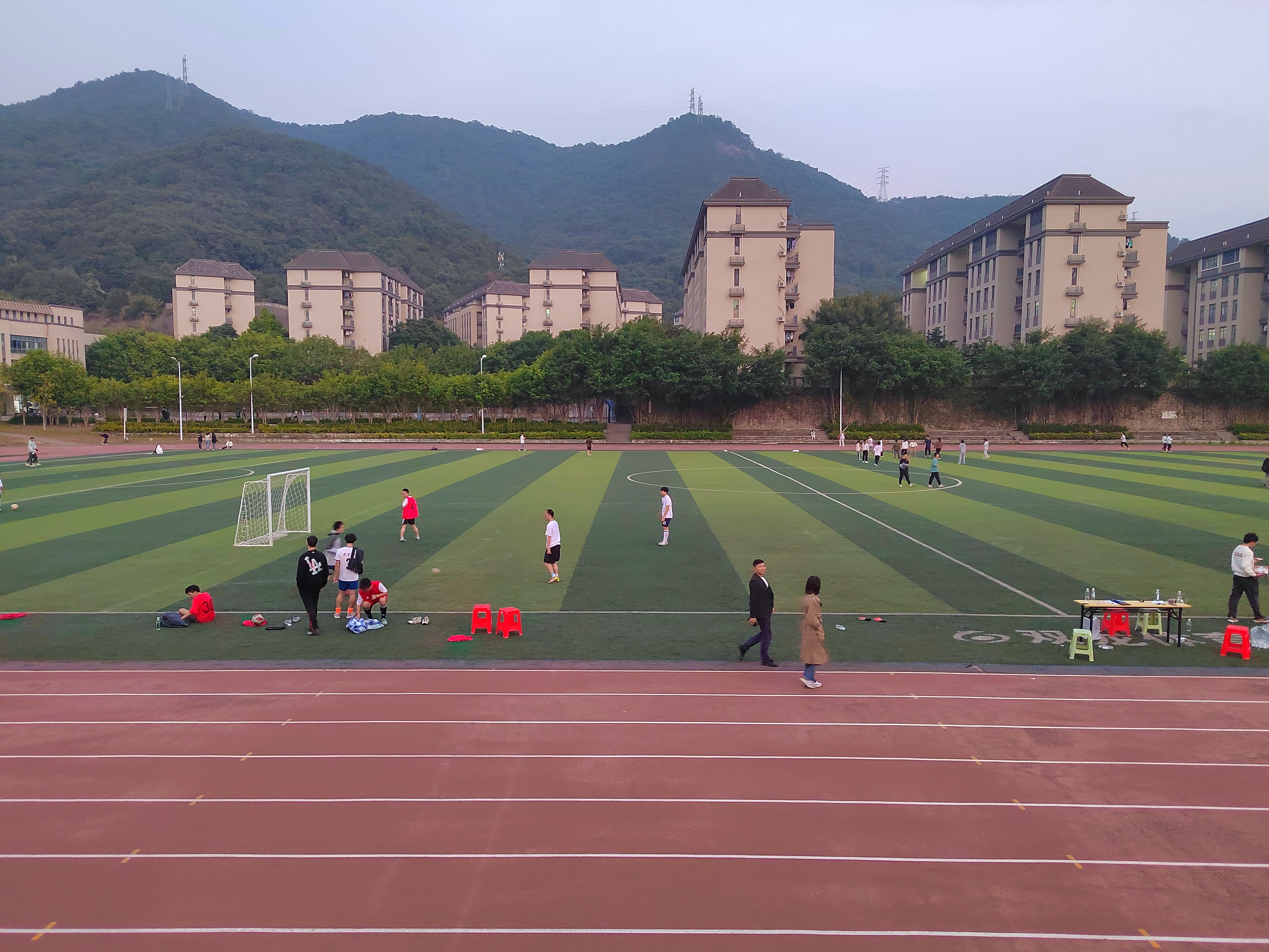 在操场收听广播