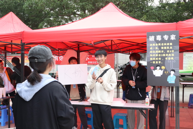 本次游园活动设置了“决不‘毒’行”“跳出毒圈”“消‘毒’一线”等六个互动小游戏,通过闯关形式增强同学们对毒品的认识,使同学们玩有所乐、乐有所获。活动过程中,志愿者向同学们宣讲禁毒知识,并通过展示仿真毒品模型加深同学们对毒品外观的印象,提高毒品辨别能力,提升拒毒防毒意识。活动现场气氛热烈,同学们积极踊跃,熙来攘往。