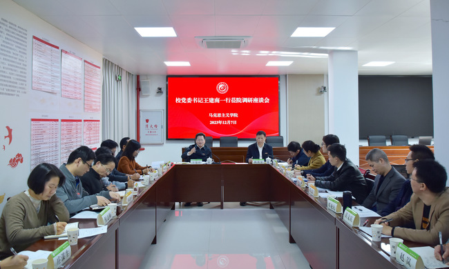 12月7日上午,校党委书记王建南、党委副书记陈世奎到马克思主义学院现场办公,面对面听取学院领导班子和教师代表的意见建议。