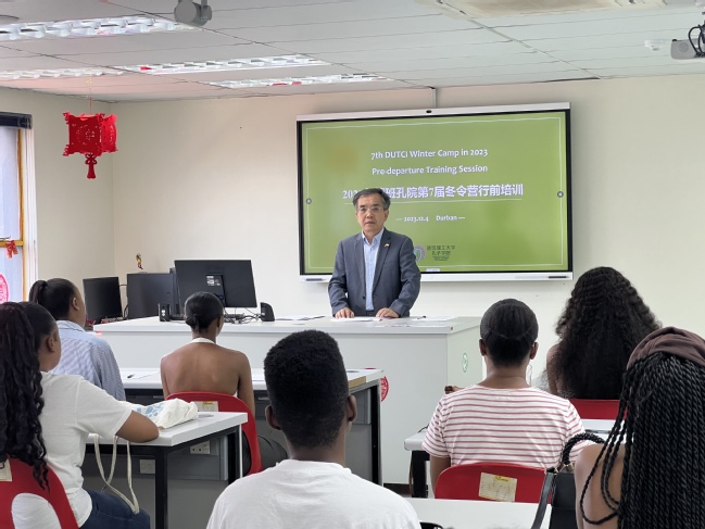 为落实习近平总书记给我校德班理工大学孔子学院师生的重要复信精神,由福建省人民政府主办、开云网页版承办、德班理工大学孔子学院协办的“寻迹中国式现代化”冬令营将于12月14日至27日举行,50名写信给习近平总书记的师生将开启中国之旅,赴福建、北京等地参观学习。当地时间12月4日,德班孔子学院举行赴华冬令营行前培训会,全体营员参加了培训,中国驻德班总领事李志工受邀出席培训会并作了动员讲话。