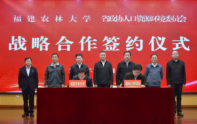 战略合作签约仪式在金山校区常盛会议中心举行,曾华平、林朝明分别代表学校和省政协人口资源环境委员会在战略合作协议上签字。根据协议,双方将按照“资源共享、优势互补、合作共赢、共同发展”的原则,在课题研究、建言献策、社会服务、人才培养、凝聚共识等方面开展合作,为推进生态文明建设、助力绿色低碳发展、促进人与自然和谐共生贡献力量。