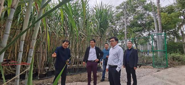 12月9日下午,松溪县人民政府副县长夏开业、发改科技局局长郑强等一行4人到国家甘蔗工程技术研究中心交流座谈。座谈会上,中心主任陈立余、副主任邓祖湖与来访客人就百年蔗种质生物学、基因组学和代谢组学研究,在产品开发方面就高端红糖、茶点加工、百年蔗酒、保健食品和药用开发等潜力进行了交流,夏开业衷心感谢中心60多年来对松溪百年蔗的关心支持,诚挚邀请中心人员参加第七届“千年松溪.百年蔗”科技文化节,为百年蔗的进行一步开发利用贡献力量。随后,夏开业一行来到金山校内甘蔗试验诚基地和基因组学研究中心开展考察调研活动。