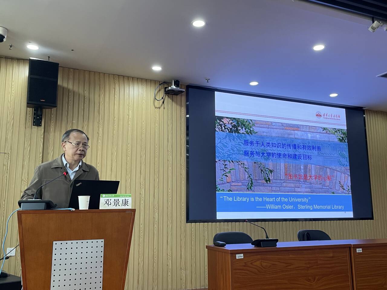 12月7日,清华大学图书馆原馆长邓景康教授在逸夫图书馆视听阅览室为全体馆员带来了题为《现代大学图书馆的定位与实践——图书馆为世界一流大学建设保驾护航》的学术报告。