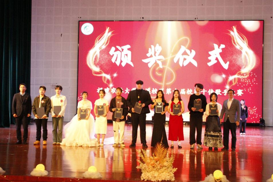 经激烈角逐,金山学院2023级国际与经济贸易(专升本)专业蒋松延摘得决赛桂冠,数字经济学院2022级农业管理专业的谢春艳、数字经济学院2022级管理科学专业的符诗桦分别获得亚军、季军。蒋松延、谢春艳、符诗桦、麻睿琳、杨文涛、林烨莹、林艳、樊东煌、张泉、刘星宇十位同学获得十佳歌手称号,赵佩其、高禹辉、郑楚渊、吴诗燕获得优秀歌手称号,吴诗燕获得最佳人气歌手称号。